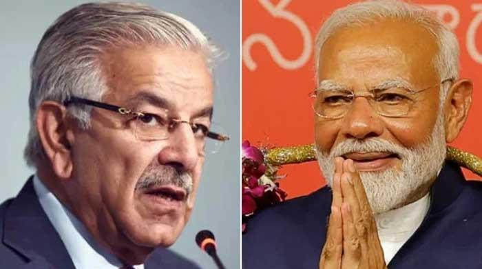 Defence Minister Khawaja Asif and Indian Prime Minister Narendra Modi. — AFP/Reuters/FileModi globally isolated, no one greets him: Khawaja Asif.Defence czar says Modi embarrassed in Indian Parliament"Modi must accept aircraft losses now."
